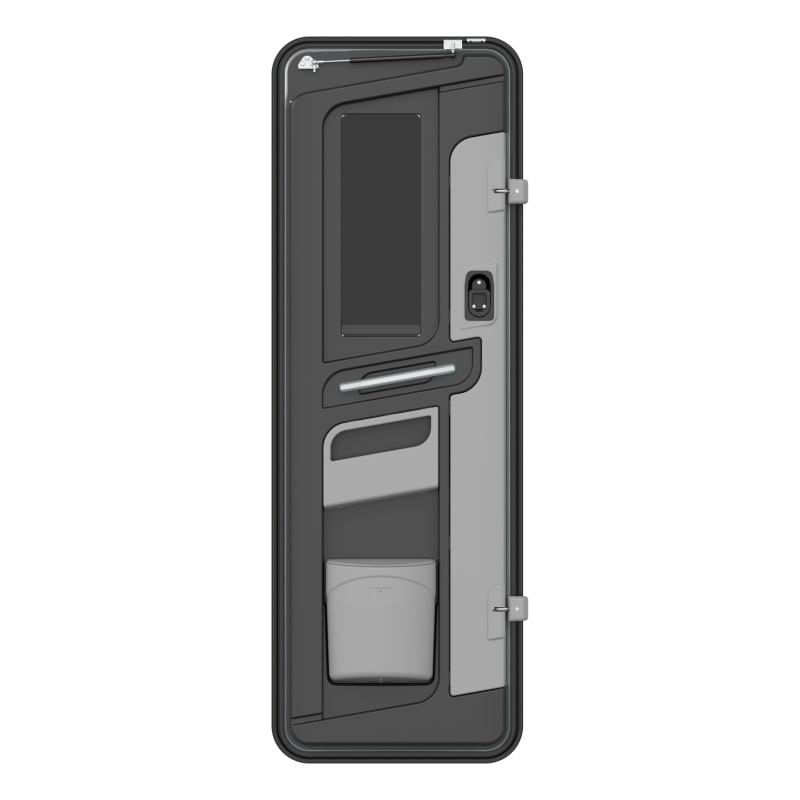 - Painted, single body aluminum frame with a painted fiberglass outer panel