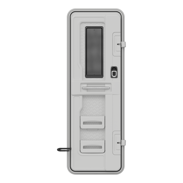 - Painted, single-body aluminum frame with a painted fiberglass outer panel